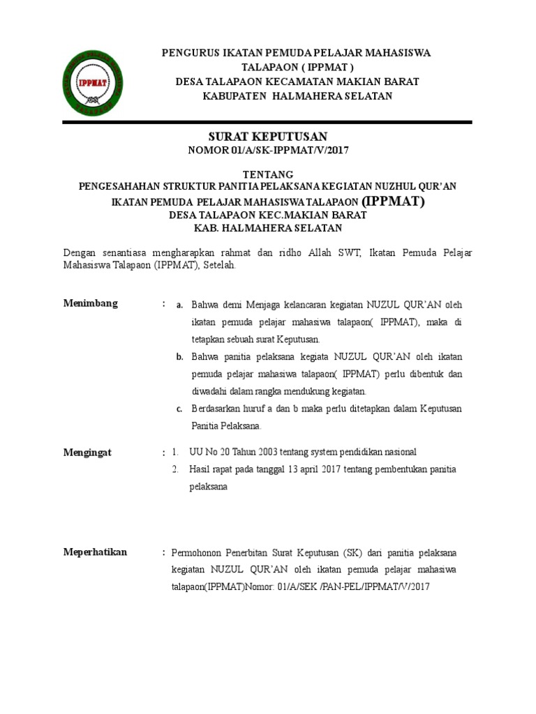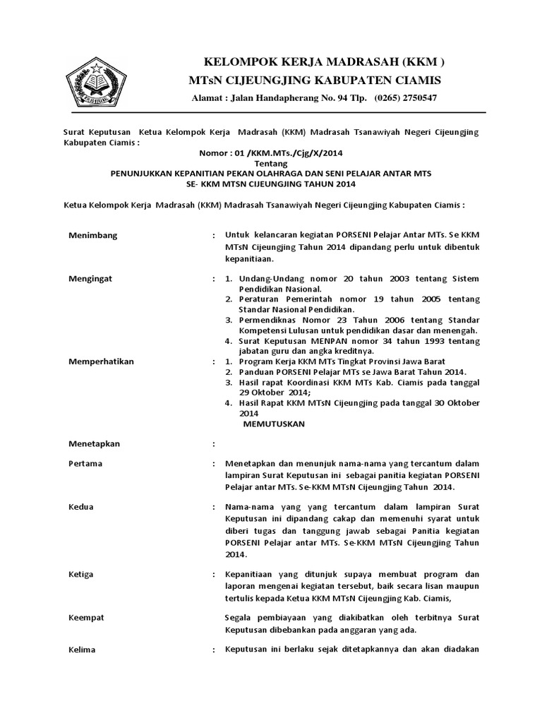 Sk Panitia Mubes 2018 from imgv2-2-f.scribdassets.com Download sk panitia rehabilitasi asrama pondok pesantren pontren com. 2018 (sk direktur pascasarjana nomor 3a tahun 2018). Sk kepanitiaan dan rencana kegiatan peringatan hari jadi kabupaten madiun ke 445 dan hut ri ke 68 kecamatan dolopo kabupaten madiun tahun 2013. Membuat list kebutuhan dan anggaran h. Bahwa pembentukan kepanitian dalm kegiatan latihan dasar kepemimpinan (ldk). Pada vidio ini mensimulasikan cara membuat name card pada suatu kegiatan kepanitian, di harapkan bisa menjadi bahan pertimbangan dan bahan panduan biar ada. Sk kepanitiaan dan laporan kegiatan. Doc pesantren kilat mufida rosida academia edu.
